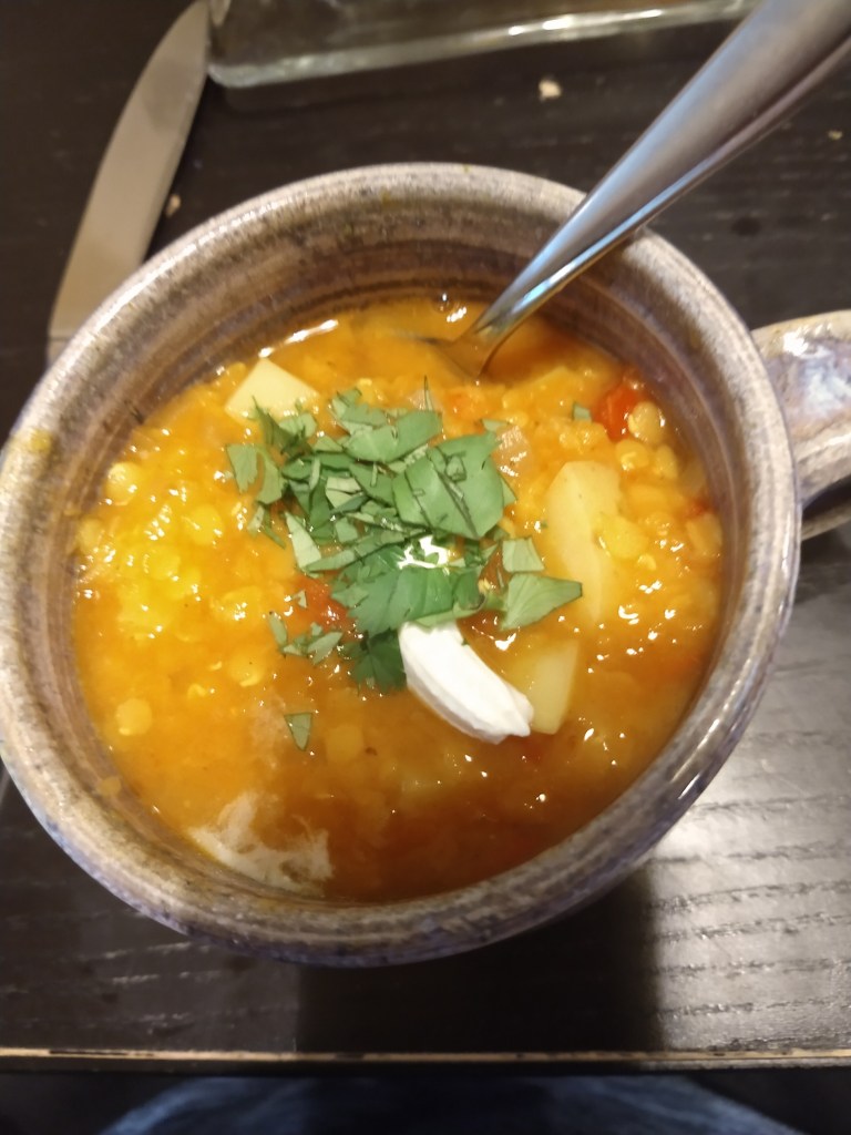 3-26-20 Lisa B: Today’s pantry dinner was red lentil soup.