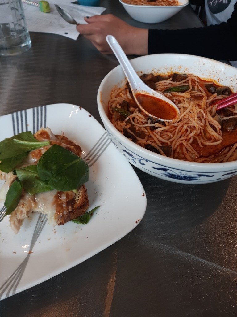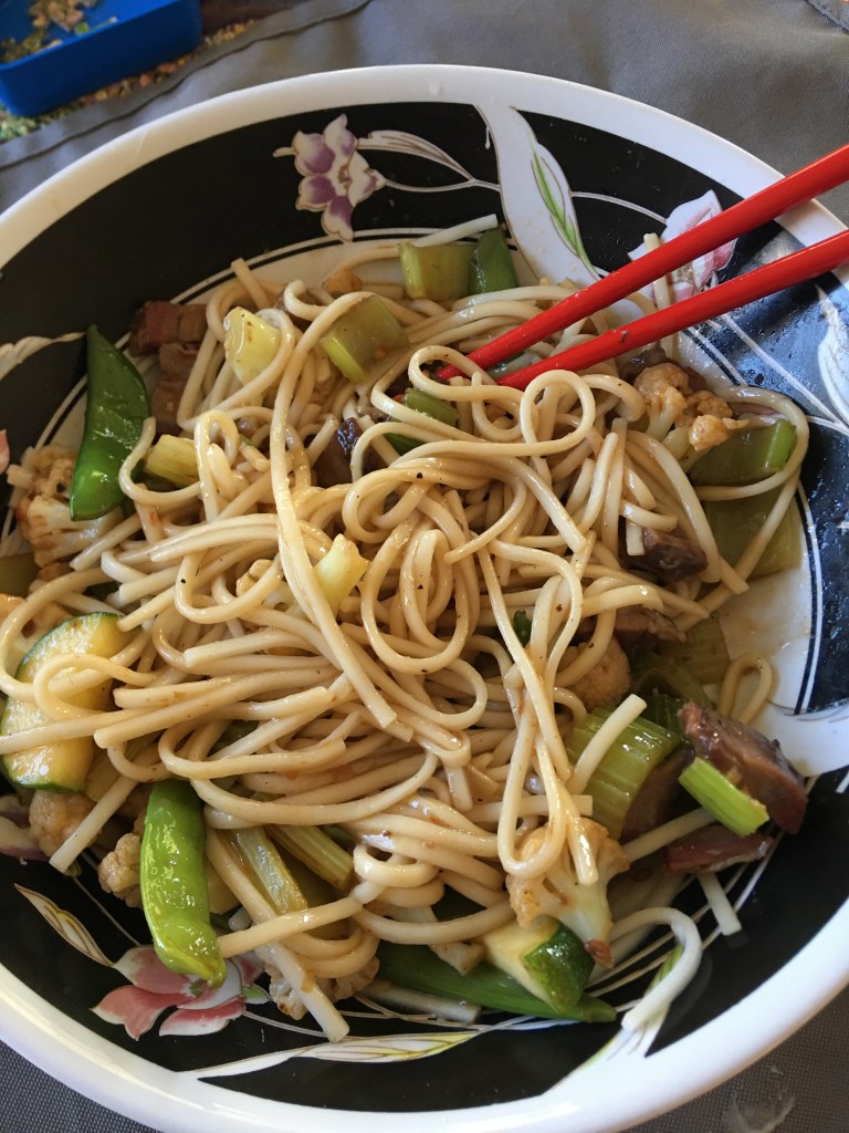 Jasmine E: We are not suffering… Szechuan noodles with leftover beef and oldest veggies from the fridge. No store visit though…