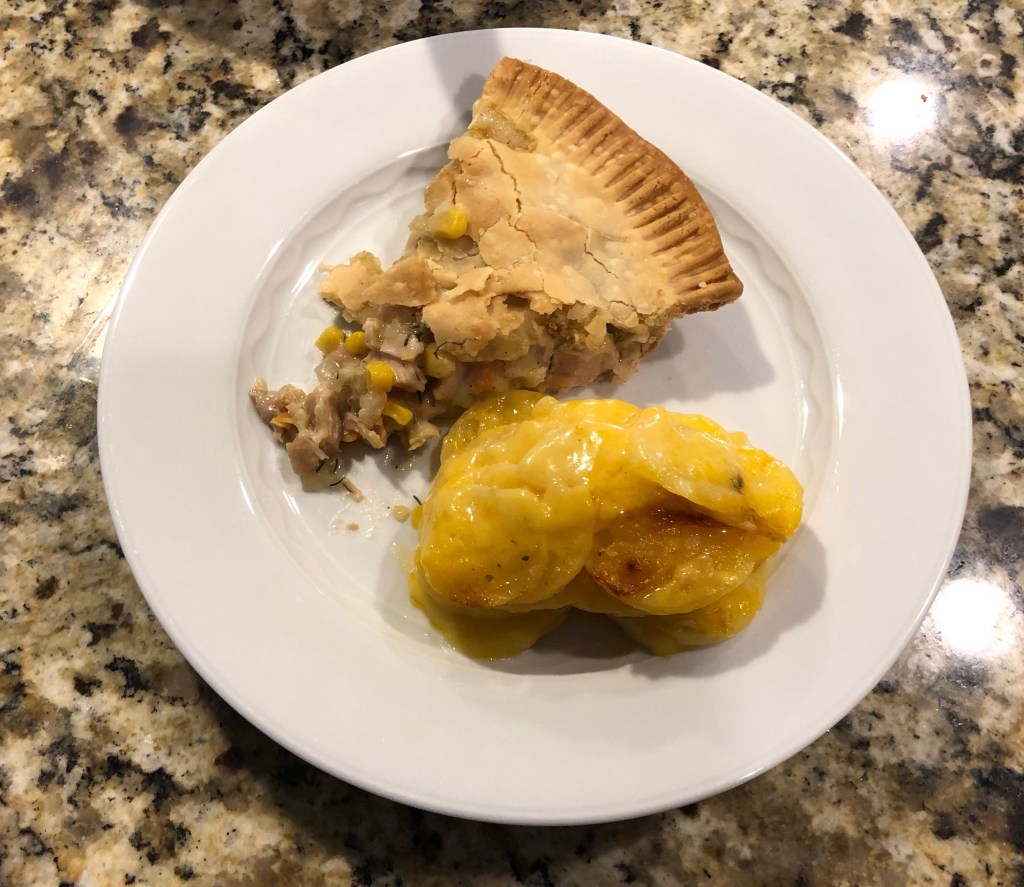 Final product with a side of au gratin potatoes (thanks to Hungary Jack!)…