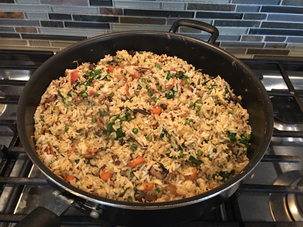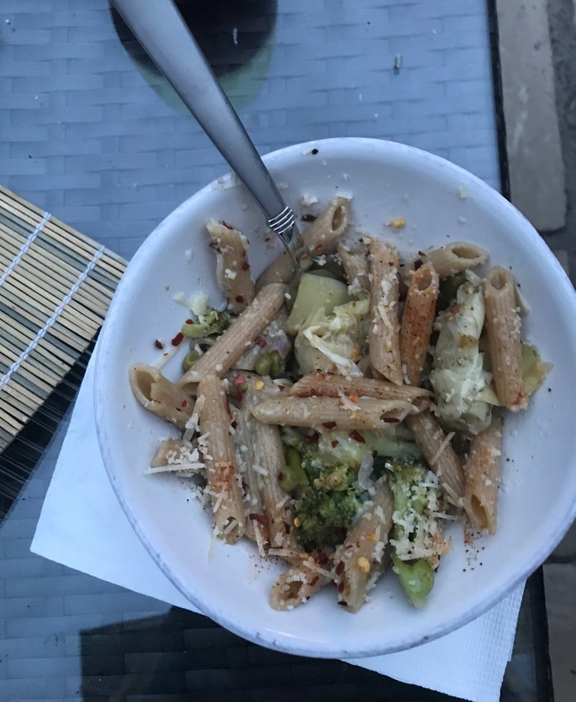 Here’s some successful(?) mashups from this past week of the Covid pantry challenge. Got some basic groceries yesterday (finally), so we should be better able to transform the pantry items into edible dinners this coming week.