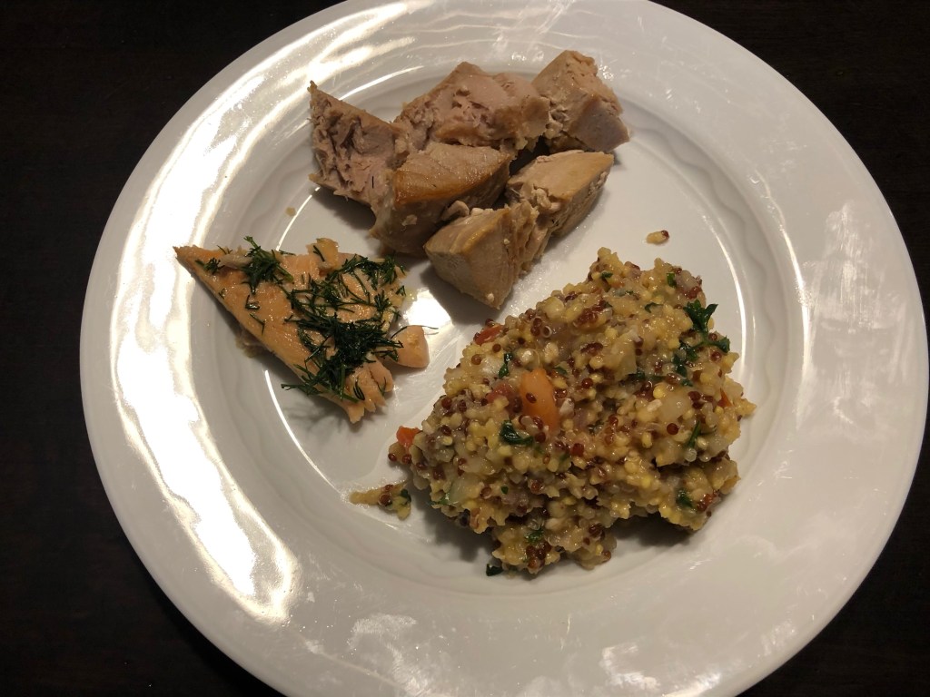 Taco Bell Inspired Beans & CheeseSautéed Salmon and Tuna with Dill; Vegan Quinoa