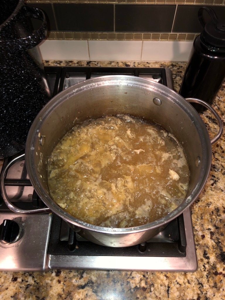 By day five, the family was begging for something other than turkey. So we used the instant pot to turn the bones and remaining bits into turkey broth/soup base and froze it, anticipating a return to turkey in a few days. We made a big lasagne (turkey free!) and ate that for a two days before thawing the soup base for the last hurrah of turkey dinner…