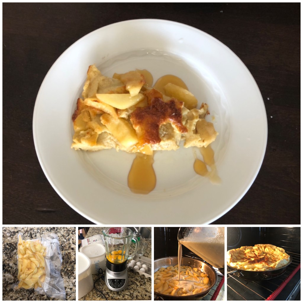 Apple puff pancake from last fall’s frozen apples“The Great British Baking Show” inspired Creme Brûlée challenge – Rules: 3 flavors, no heavy cream, limited milk/eggs – Final products: Classic Vanilla, Macha Green Tea, Coconut Lime (with coconut cream). Vanilla wins!