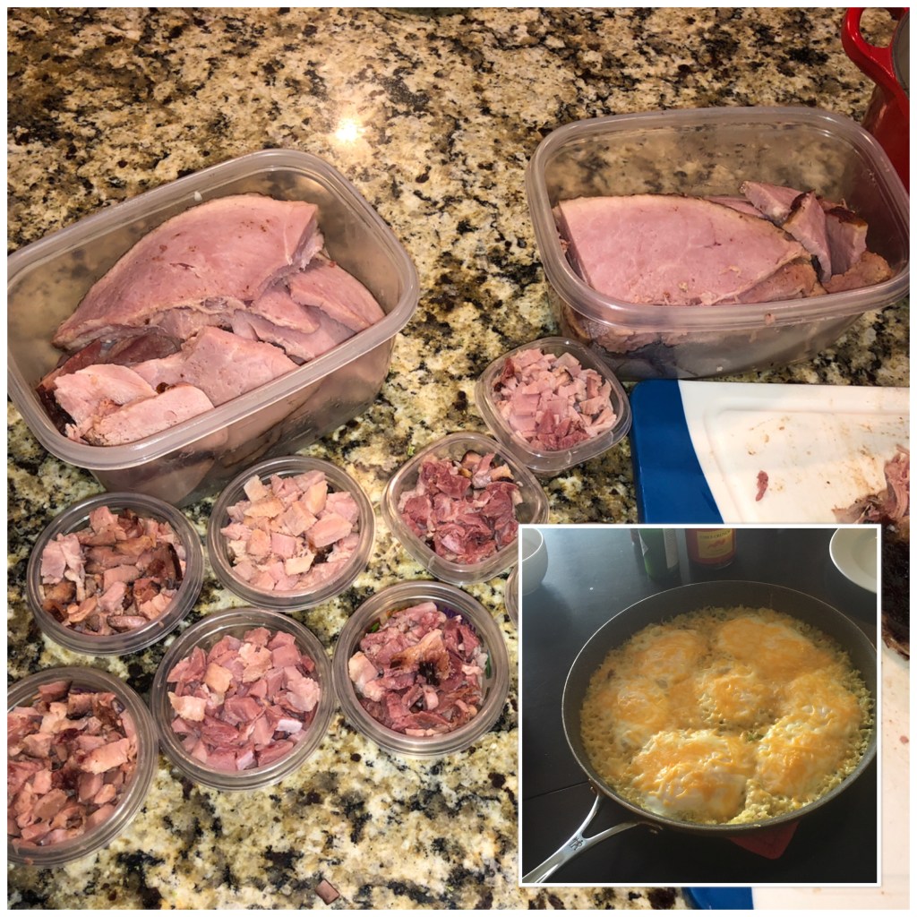 A LOT of ham… most of which will probably get frozen. Inset: Favorite family breakfast skillet – “Ramen Surprise”